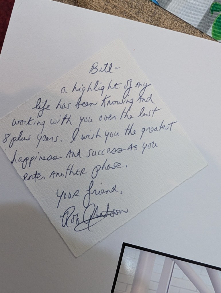 a highlight of my life has been knowing and working with you over the last 8 plus years. I wish you the greatest happiness and success as you enter another phase.