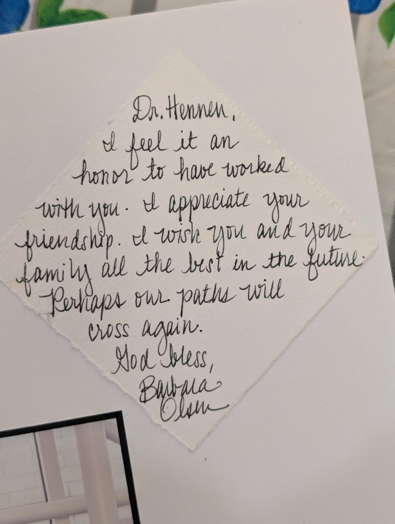 I feel it an honor to have worked with you. I appreciate your friendship. I wish you and your family all the best in the future. Perhaps our paths will cross again.