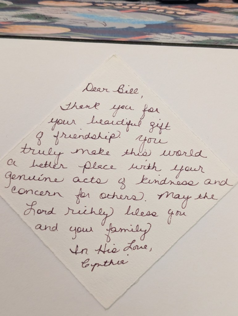 Thank you for your beautiful gift of friendship. You truly make this world a better place with your genuine acts of kindness and concern for others. May the Lord richly bless you and your family.